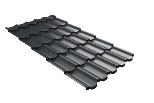 Металлочерепица квинта плюс Grand Line c 3D резом 0,5 PurPro Matt 275 RAL 7016 антрацитово-серый