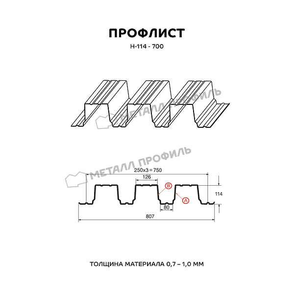 Описание товара: "Профнастил н114 x 750 B покрытие ПЭ Полиэстер 01 RAL 9003 0,8 мм"