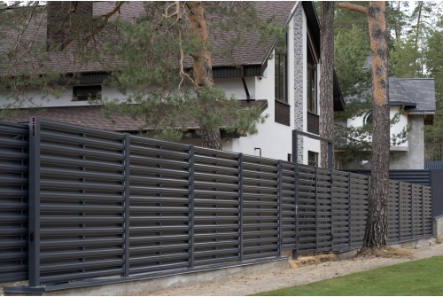 Ограждение такого типа визуально обладает легкостью, оно продуваемо, не обладает парусностью, оставляет участок частично открытым, но при этом максимально защищённым.