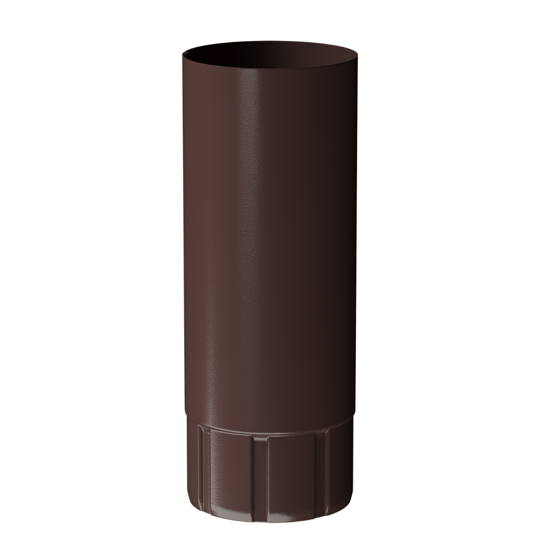 Труба из оцинкованной стали с полимерным покрытием, окрашена в цвет «Шоколад», имеет длину 1 или 3 метра и диаметр 90 мм. Трубы используются для отведения воды из желоба, а также для соединения двух колен, при необходимости.